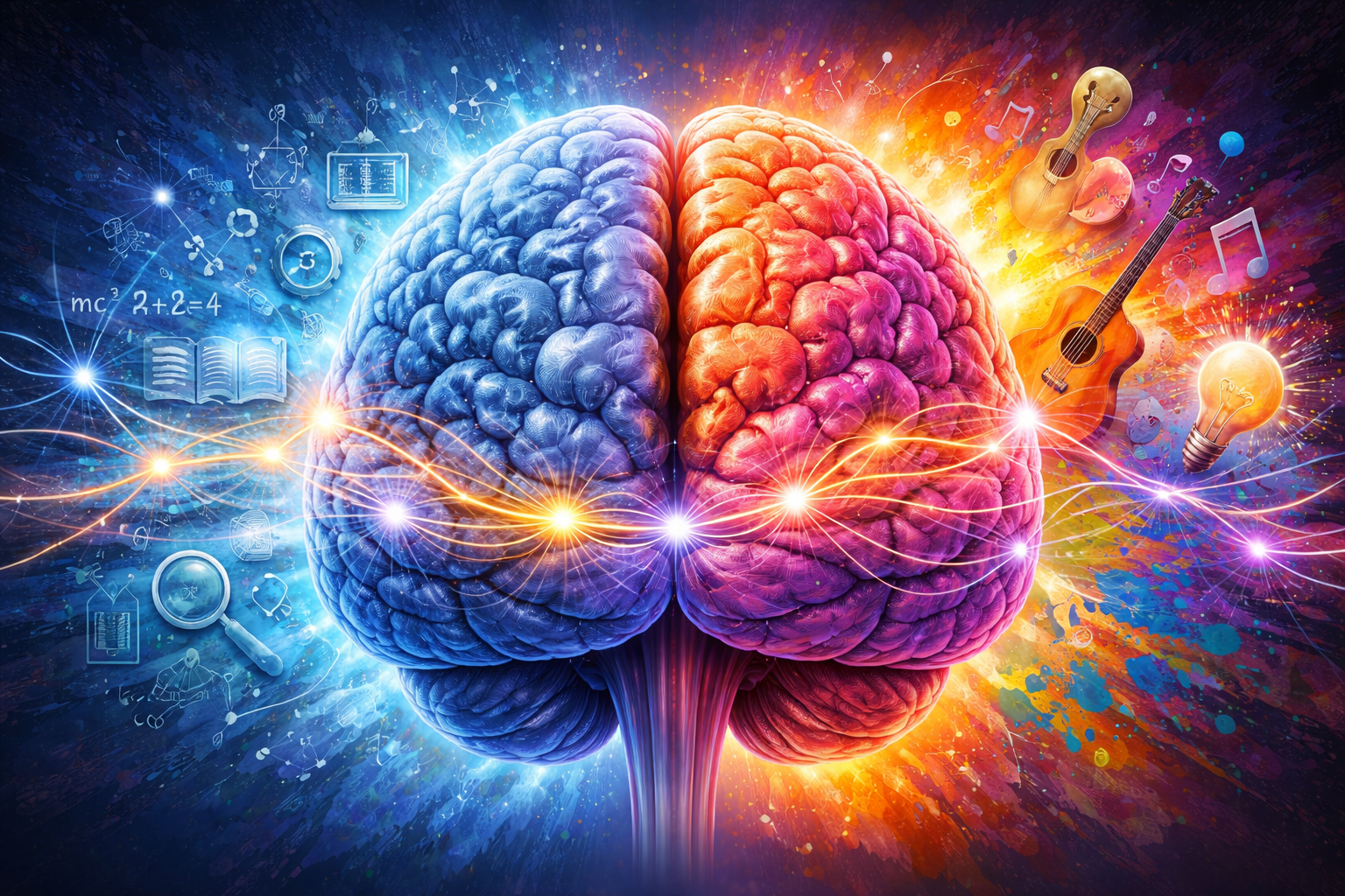 This does not mean the brain is split into a “logical half” and a “creative half.” Most complex behavior depends on both hemispheres communicating through white matter tracts such as the corpus callosum, which allows distributed processing to become coordinated thought and action.